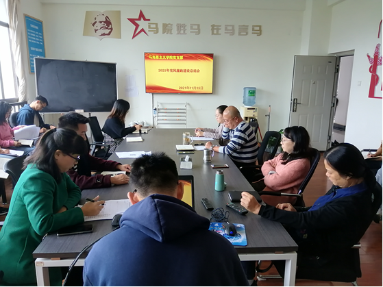 2021年11月15日上午,马克思主义学院在学院会议室召开了2021年度党风廉政建设工作总结大会。会议由支部书记郑立功同志主持,学院全体教职工参加了会议。