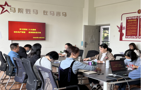 2022年10月25日上午,马克思主义学院召开了教职工思想政治理论学习会,本次学习会以“学习贯彻党的二十大精神 转作风严师德 爱岗惜岗见行动”为主题。会议由学院院长张丽辉同志主持,全体教职工参加了学习。